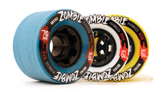 The Mini Zombie was developed for 2012 as our line up expanded and the need for a smaller freeride wheel was born.  Now, all the boards that can't confidently host a 76mm wheel have the opportunity to house a quality freeride formula, allowing you to slide in every direction until you just can't walk yourself up the hill anymore.  Available in 3 durometers, pick your duro based on the day and what it brings you.