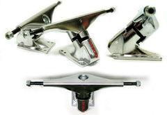 The Revenge Type I is a single pivot 45° torsion truck made of 80C12 recycle-based aluminum. They are designed for carving, sidewalk surfing and for the pure thrill of turning. They are not intended to replace your conventional trucks for the skatepark. Revenge trucks are too performance oriented for traditional transition-based skateboarding.