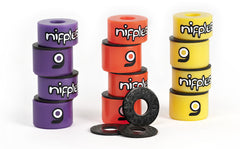 Nipples are poured in our extremely high rebound Randy Urethane formula. We stumbled on this urethane a few years ago while testing ultra high rebound formulas for wheels, but we found this urethane to actually be too high rebound for a wheel urethane. Perfect for a bushing.